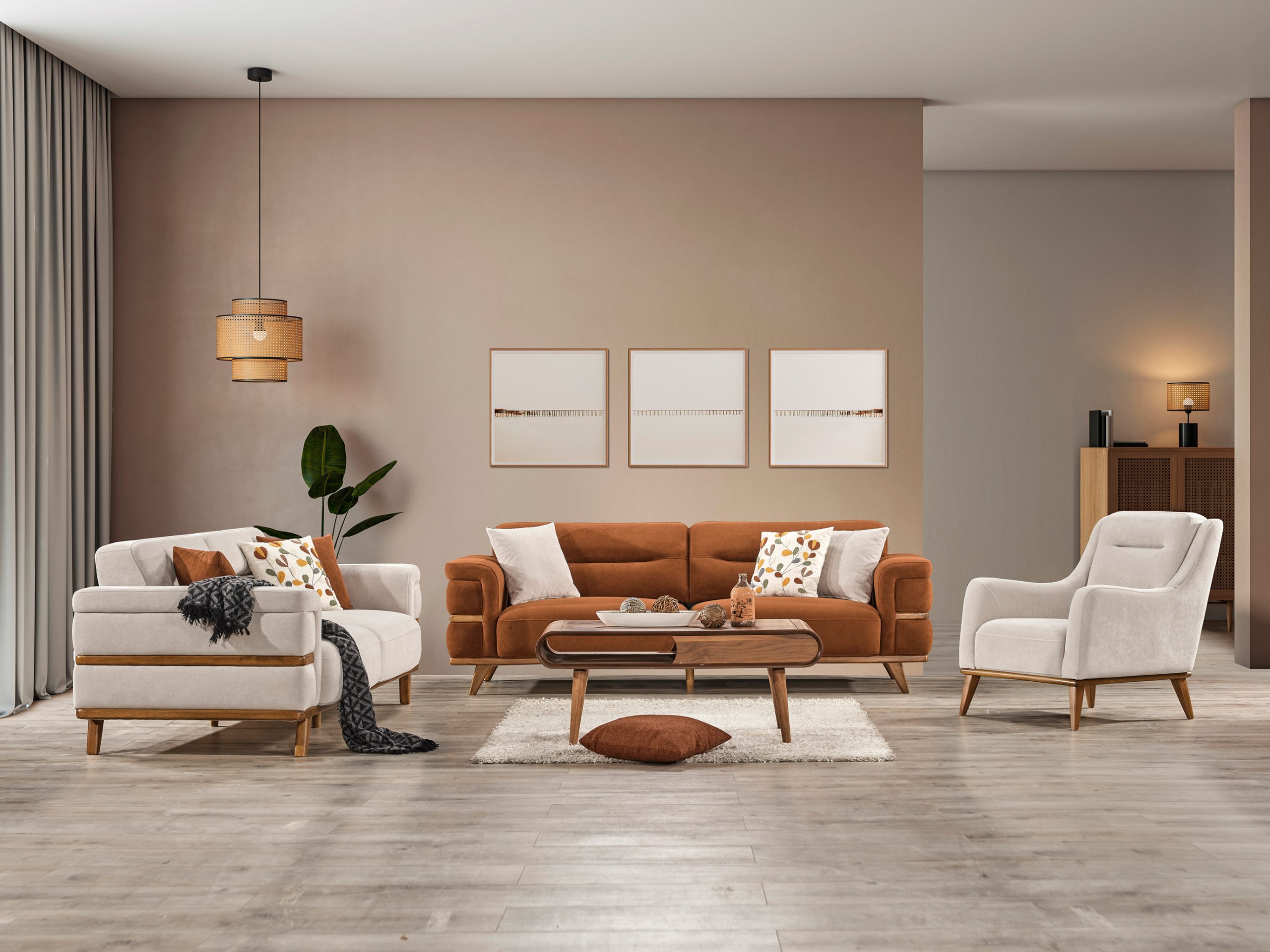 April Koltuk Takımı, doğadan ilham alan toprak tonları ve yumuşak dokusuyla yaşam alanlarınıza sıcaklık katıyor.