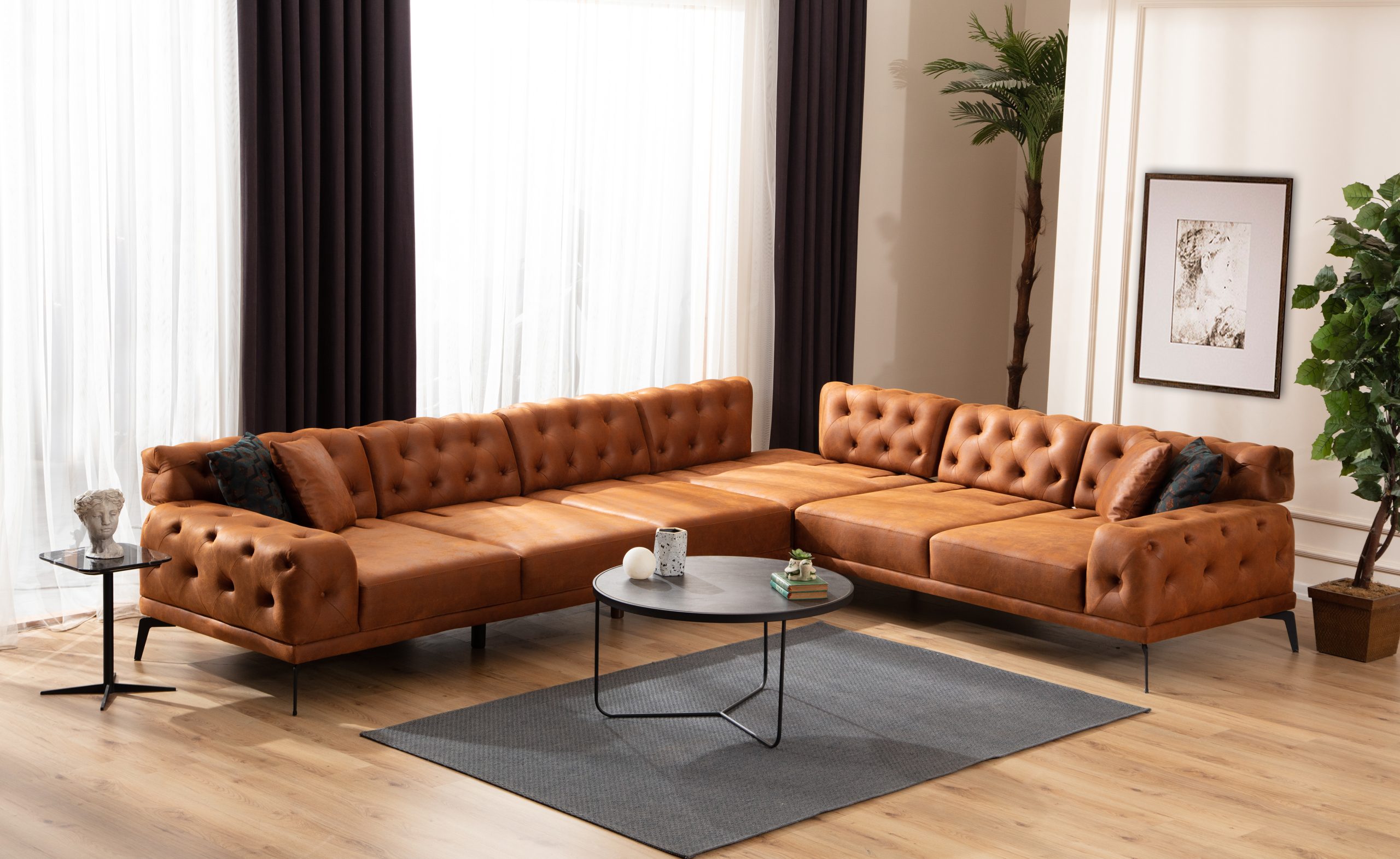 Özenle yerleştirilmiş kapitone detayları, yüksek yoğunluklu sünger dolgusu ve ince metal ayaklarıyla Fuji, hem estetik hem ergonomik bir yaşam alanı sunuyor.