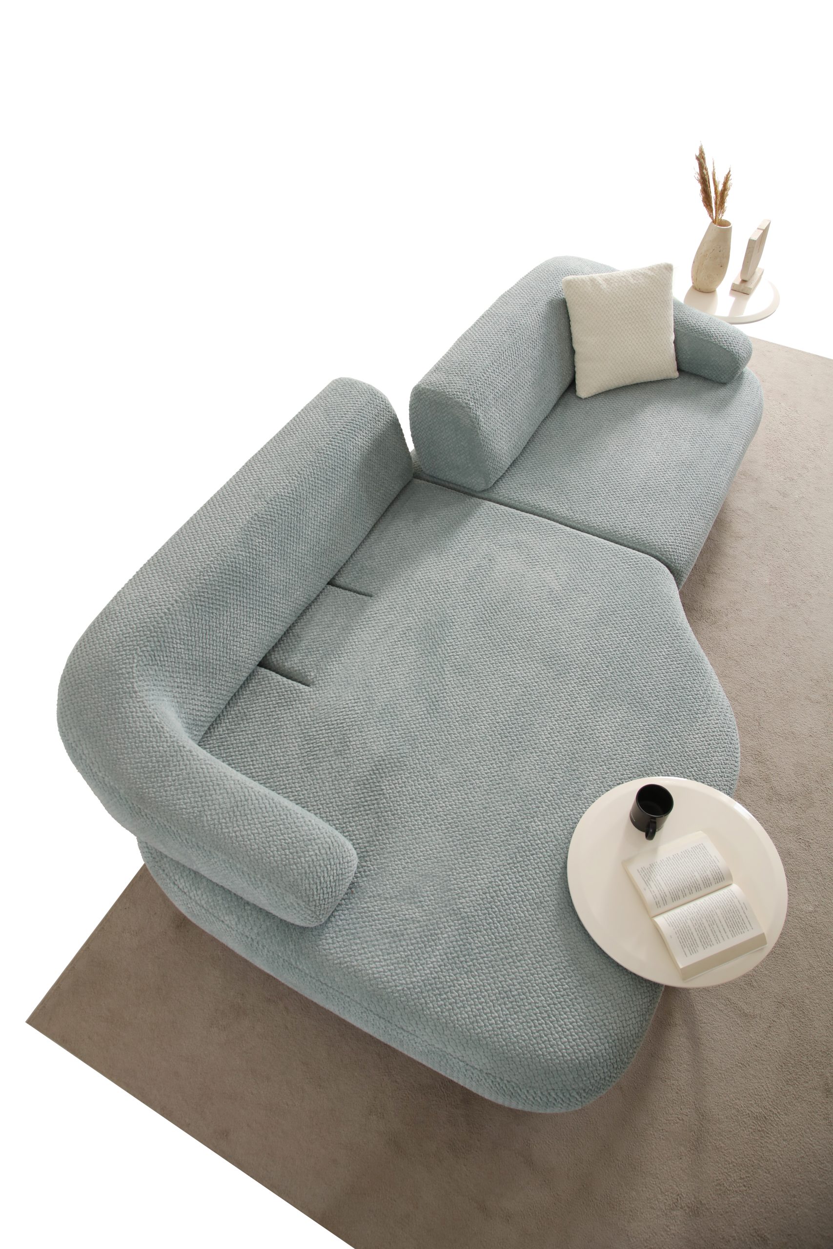 Prada Koltuk Takımı, modern yaşam alanlarında zarafeti ve konforu bir araya getiriyor. Su damlasını andıran kıvrımlı hatları, yumuşak dokulu döşemesi ve pastel tonlarıyla ferah bir atmosfer yaratır. Metal ayak detayları ve dengeli renk uyumları sayesinde iç mekânda zarif bir odak noktası olur. Fonksiyonel formu sayesinde hem dekoratif hem de ergonomiktir.