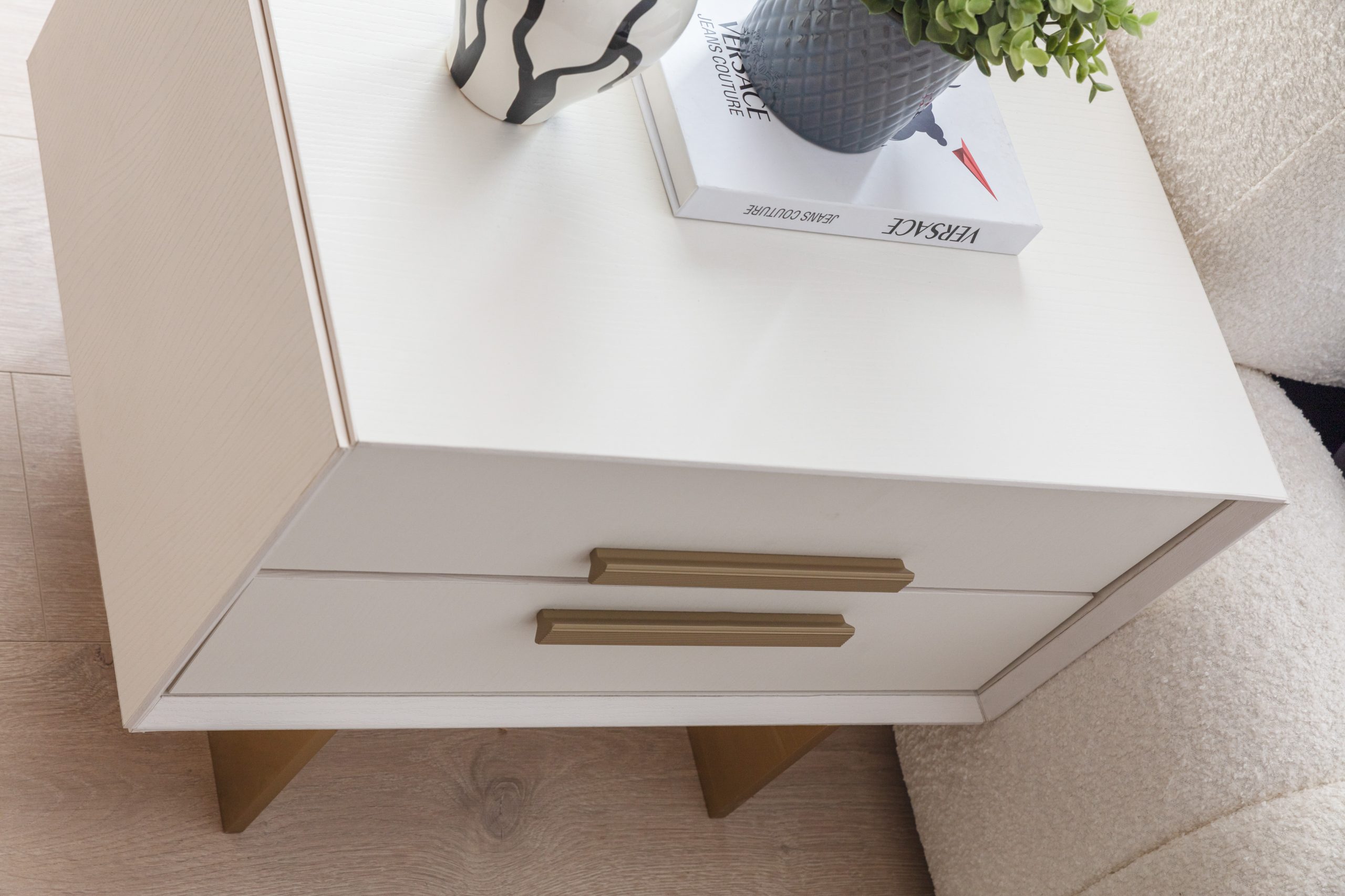 Renk Paleti: Beyaz, ve koyu tonlarındaki renkler, odada zarif bir denge sağlarken, altın detaylar da lüks bir hava katıyor.